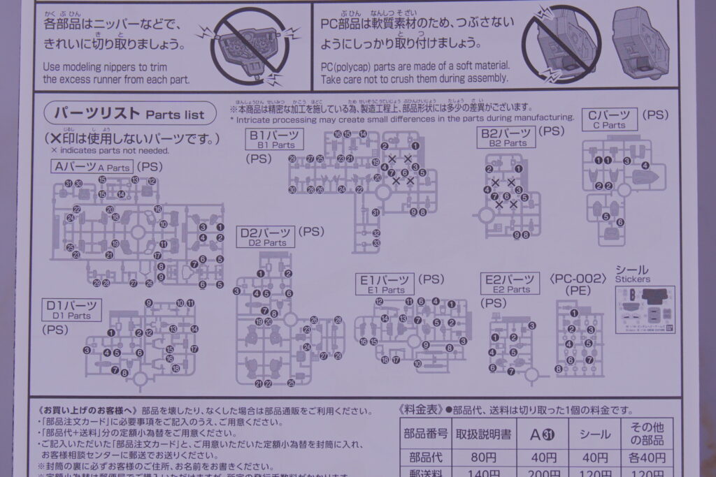 | ※注意点※ | クリアパーツは白化しやすいためゲート処理は慎重に。ガトリングの保持はやや不安定なので、持たせ方に工夫が必要。 |