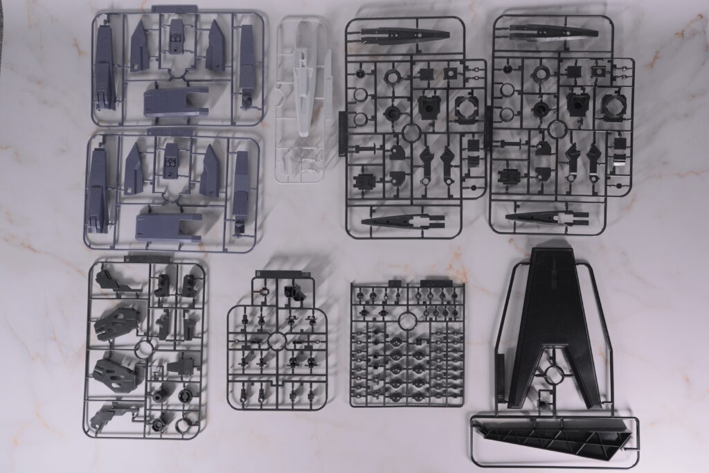 | ※注意点※ | 大型パーツとヒンジ構造が多いため、組み立て時はパーツの向きを都度確認。 合体用のジョイント部には無理な力をかけず、保持ピンをしっかりはめ込むのがポイント。 外装パーツは面積が広く、ゲート処理跡が目立ちやすいため丁寧に仕上げたい。 |