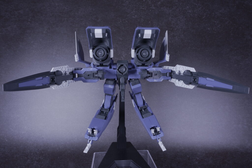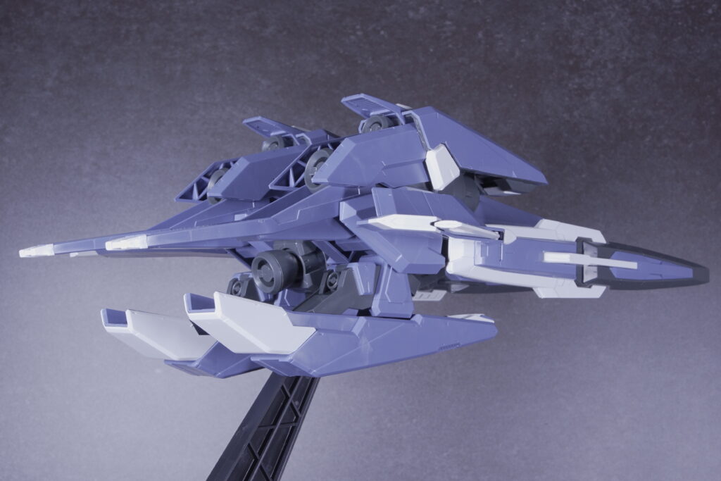 | 可動範囲 | 支援メカとしての構造ながら、各部の展開や変形機構が明快で動かしやすい。 エクシア合体時もバランスが良く、スタンド使用で安定した飛行ポーズが可能。 |