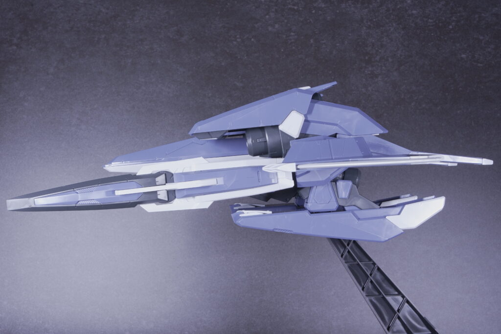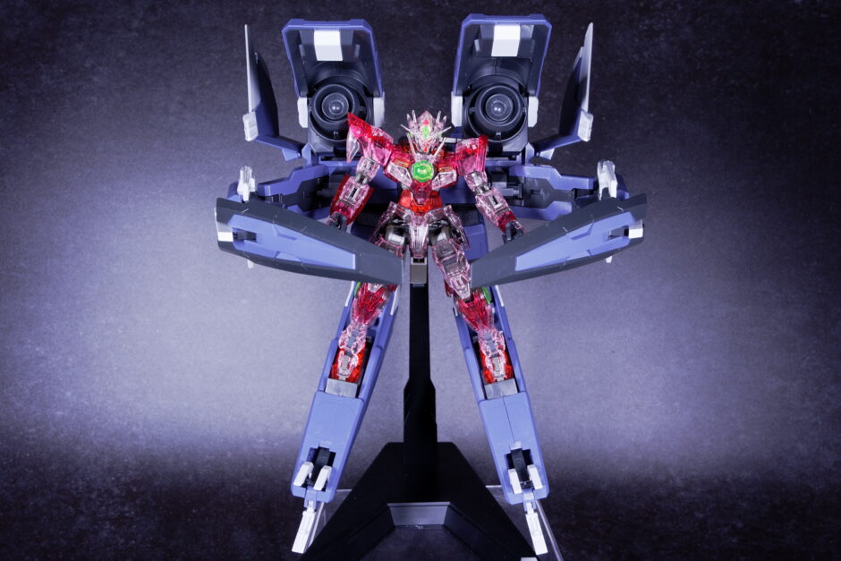単独艦形態では機体の密度とメカディテールが際立ち、エクシアと合体させることで劇中さながらの迫力を楽しめます。