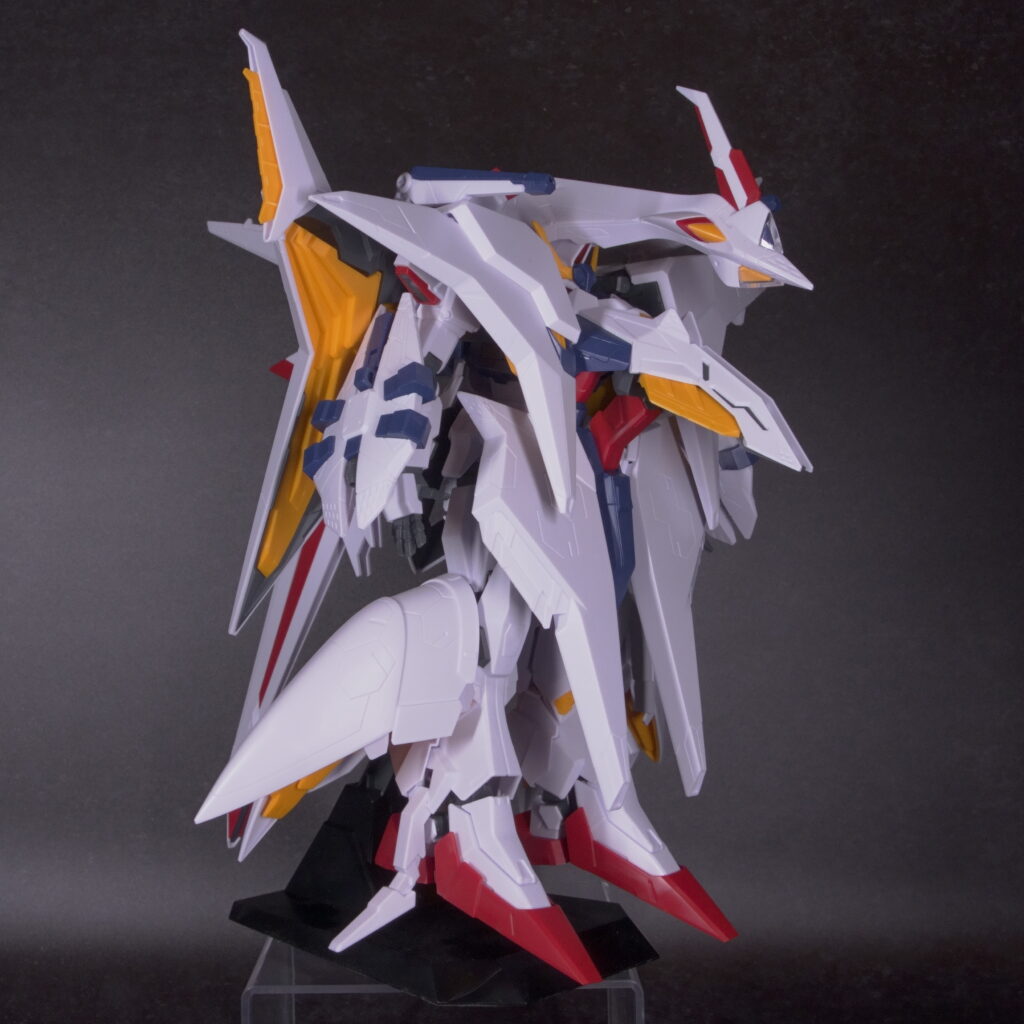 | 可動範囲 | 大型ユニットながら関節可動域は広く、アクションスタンド使用で迫力あるポーズが可能。 特に肩と脚部の可動が優秀で、重量感ある動きを再現できる。 |