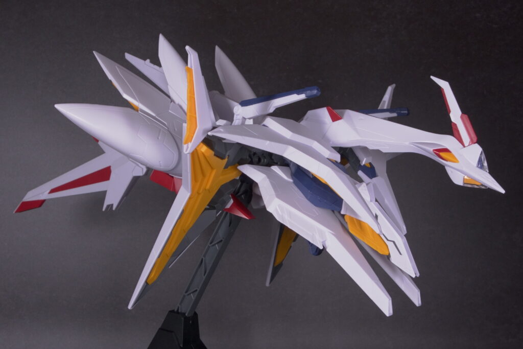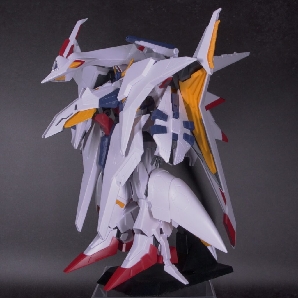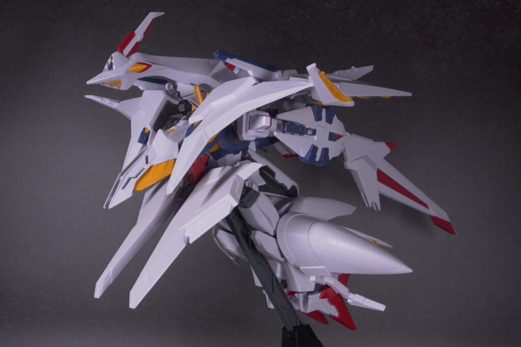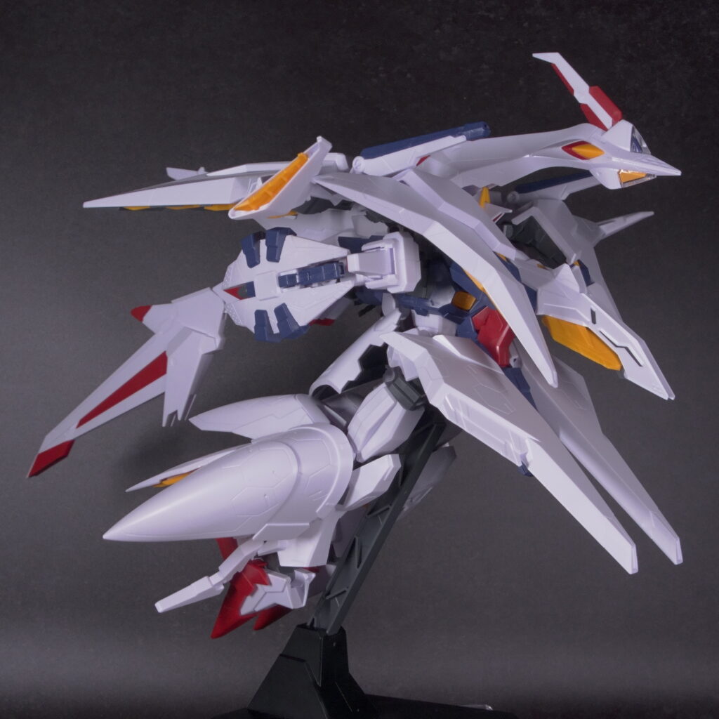 特徴的なシルエットと高密度な装甲ディテールが組み合わさり、存在感はまさに“HGの限界突破”といえる仕上がりです。