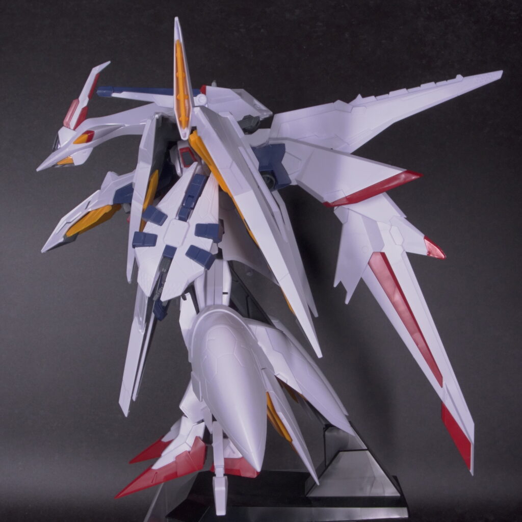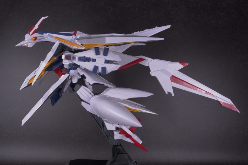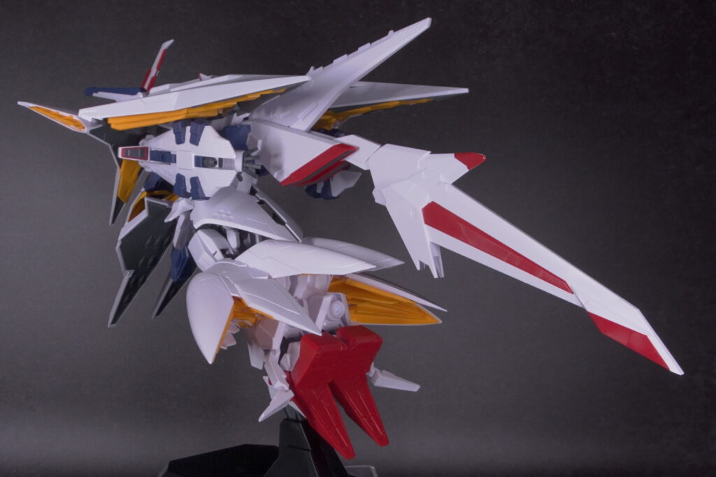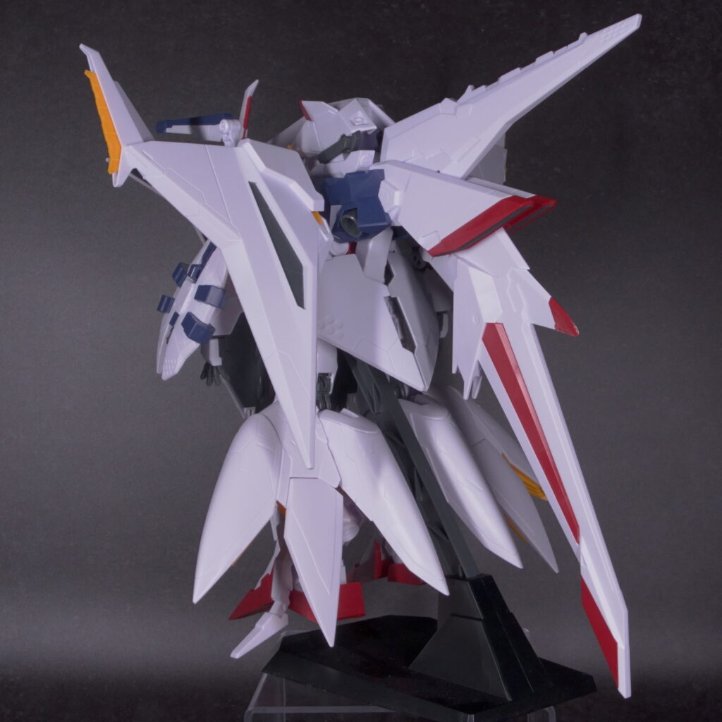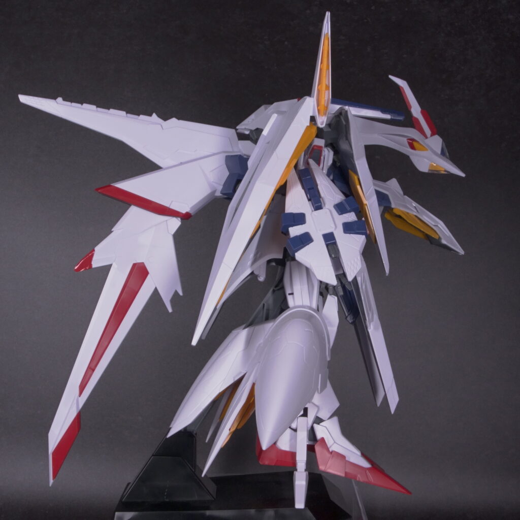 特徴的なシルエットと高密度な装甲ディテールが組み合わさり、存在感はまさに“HGの限界突破”といえる仕上がりです。