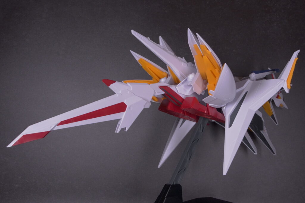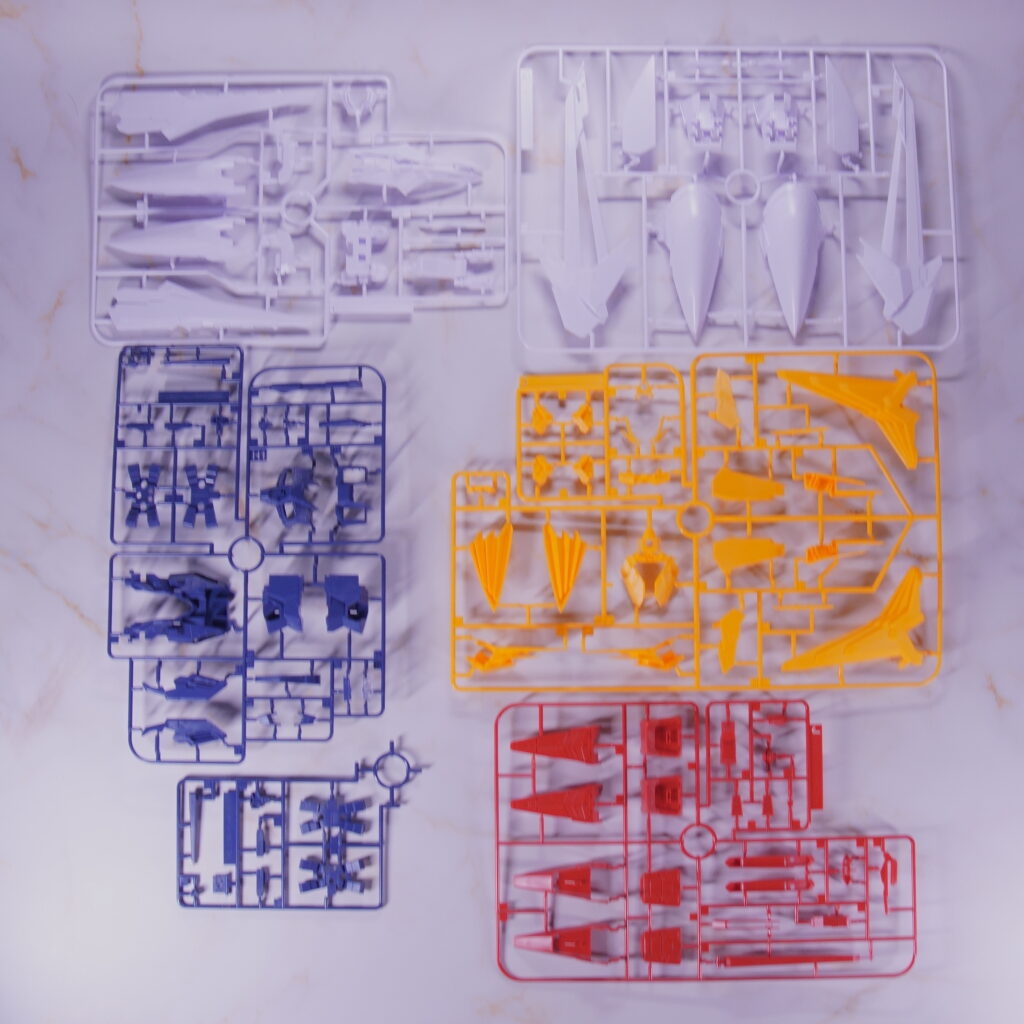| ※注意点※ | 大型パーツが多く、装甲の取り付け順や向きを説明書通りに進めると安定。 完成後は重量で関節が下がりやすいため、はめ込みを確実にして保持力を確保。 フライトユニットの翼部分は薄く、力を入れすぎると破損の恐れあり。 |