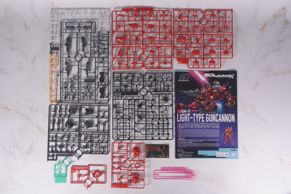 ライトタイプガンキャノンは、細身のプロポーションと赤い外装の中に、黄色・グレー・グリーンが効いたメリハリのある配色が印象的なキットです。