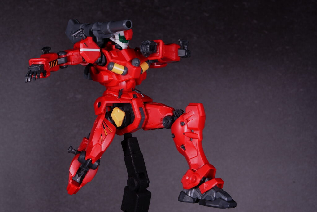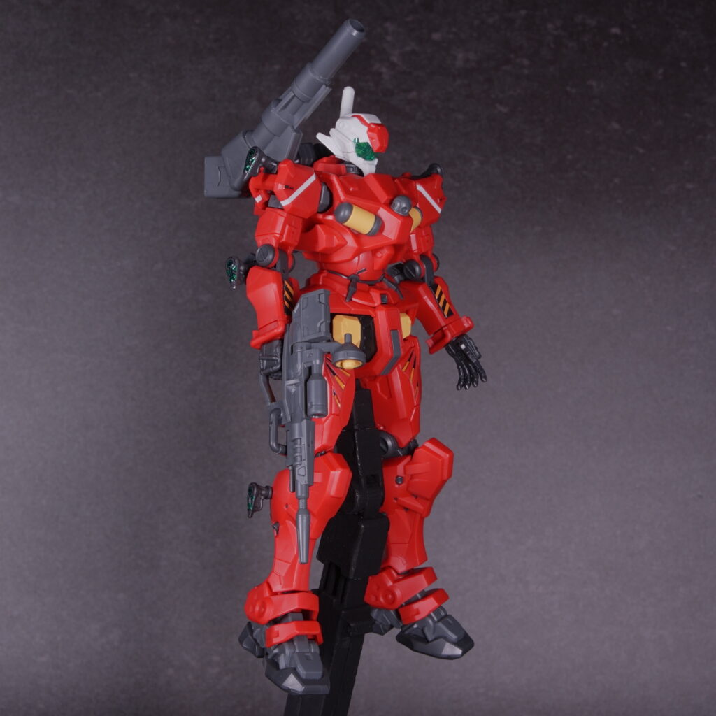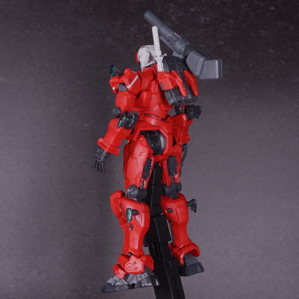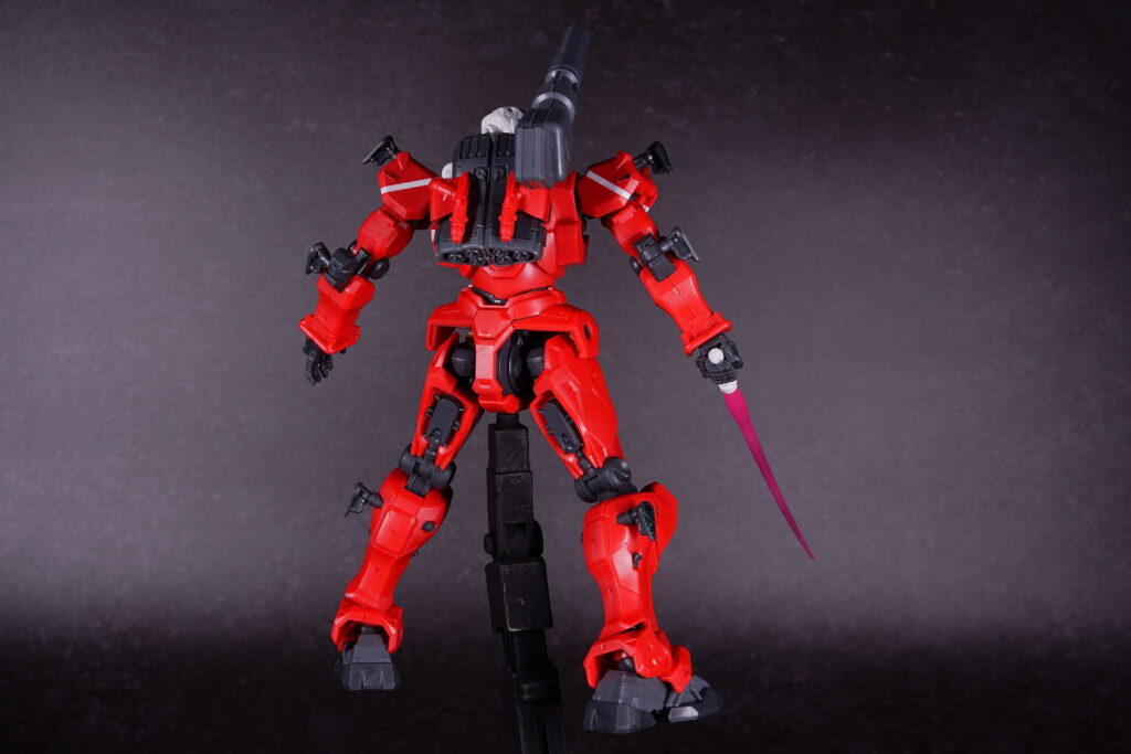 素組み状態でも情報量がしっかり確保されており、立たせておくだけで「高機動キャノン機」という設定が伝わってくる仕上がりになっています。
