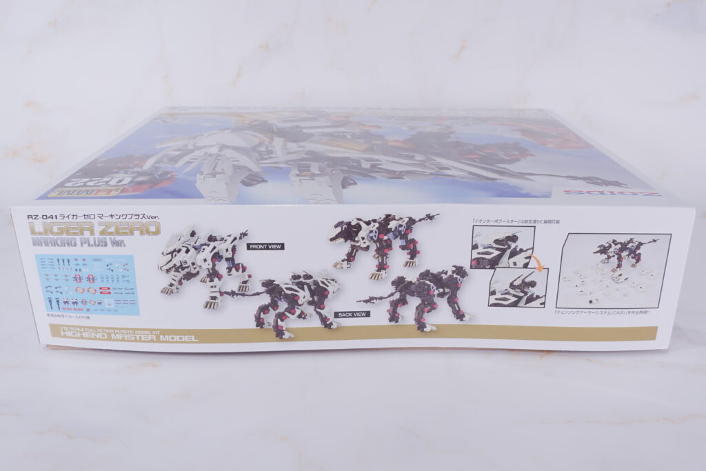 白を基調とした背景に、咆哮するライガーゼロが描かれた迫力あるアートワーク。 HMMシリーズ特有の高級感と緊張感が漂うデザインで、店頭でも一際目を引くパッケージです。 |