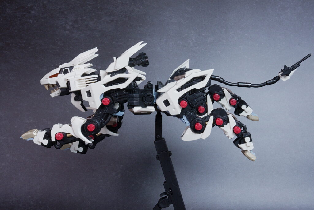 ・ 素体フレーム×外装のメリハリで、低姿勢~跳躍風まで“獣”らしいポージングが決まる。