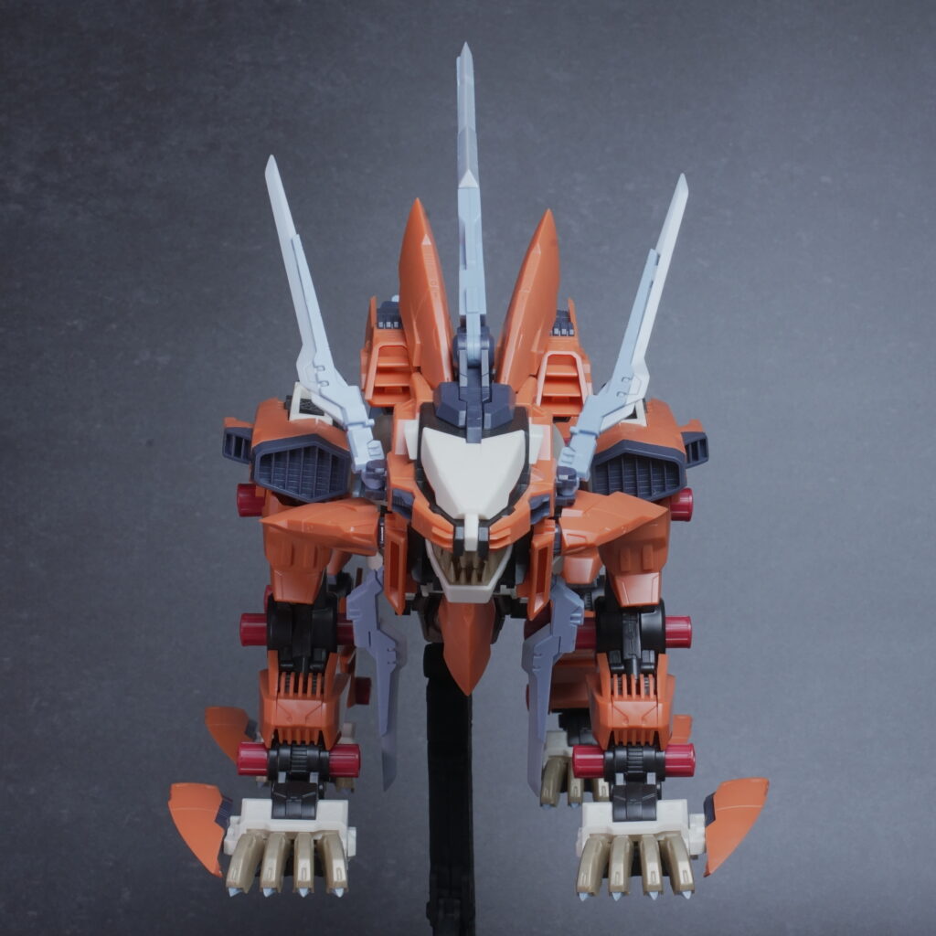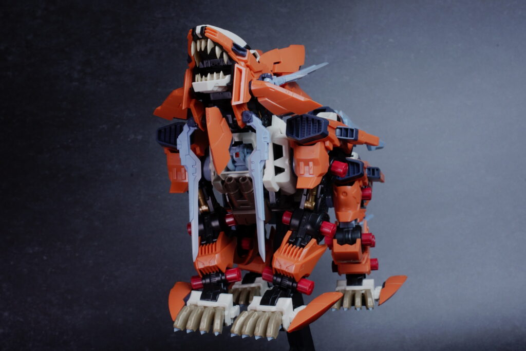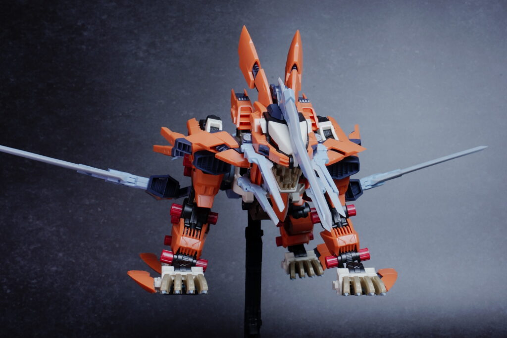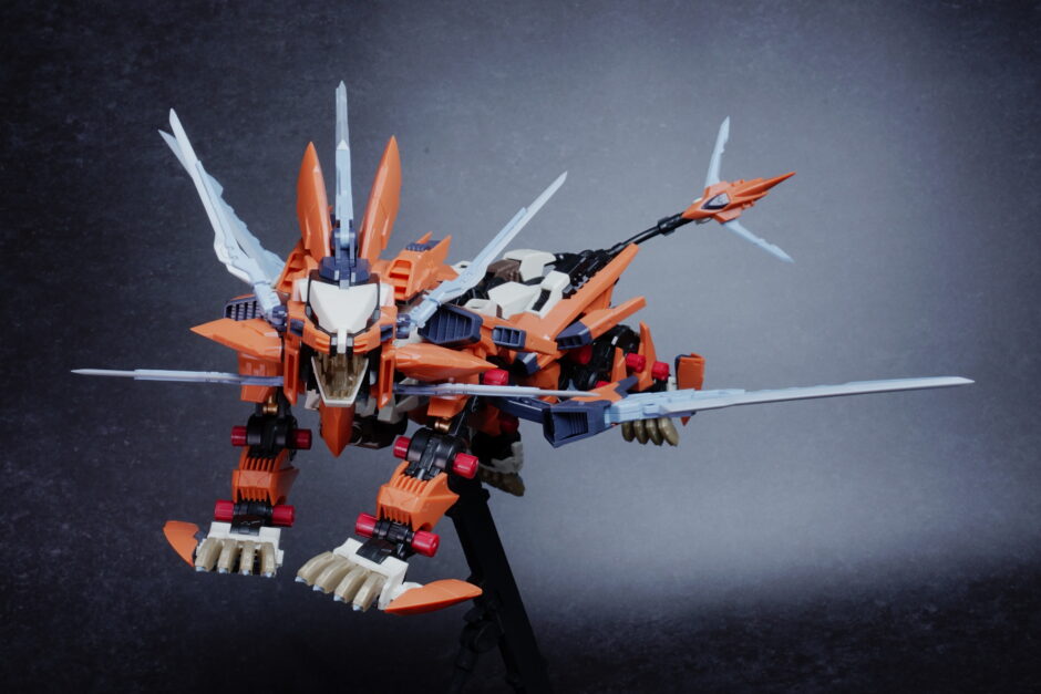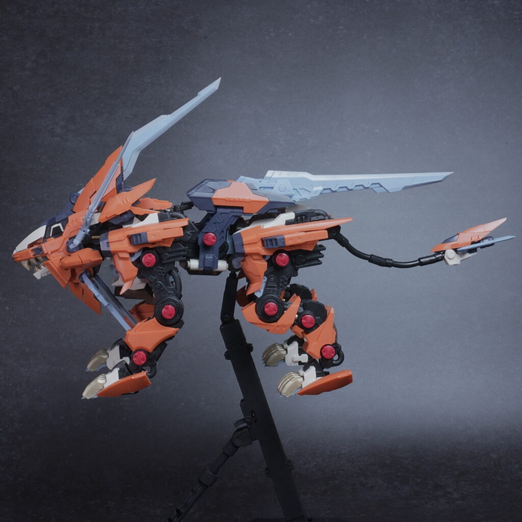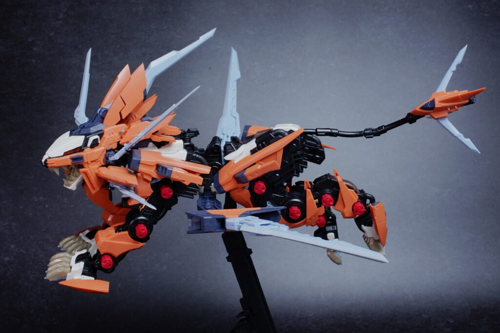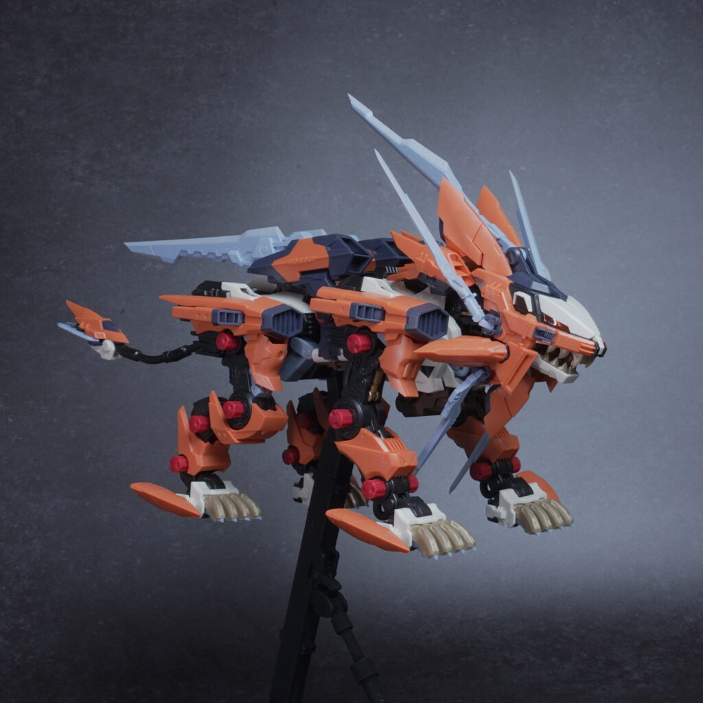 鋭利なパーツが多く取り扱いには丁寧さが求められますが、素組みでも鮮烈なオレンジと鋭いシルエットで、ディスプレイ映えは間違いなく抜群。ライガーゼロの進化系統の中でも、特に攻撃的な格好良さを求める方にぜひ手に取っていただきたいキットです。