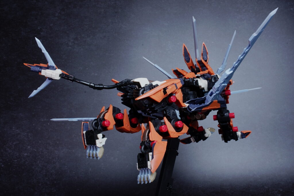 無数のブレードを展開した際の見栄えと、広い可動域を活かした“魅せるポージング”が最高に楽しい一体です。