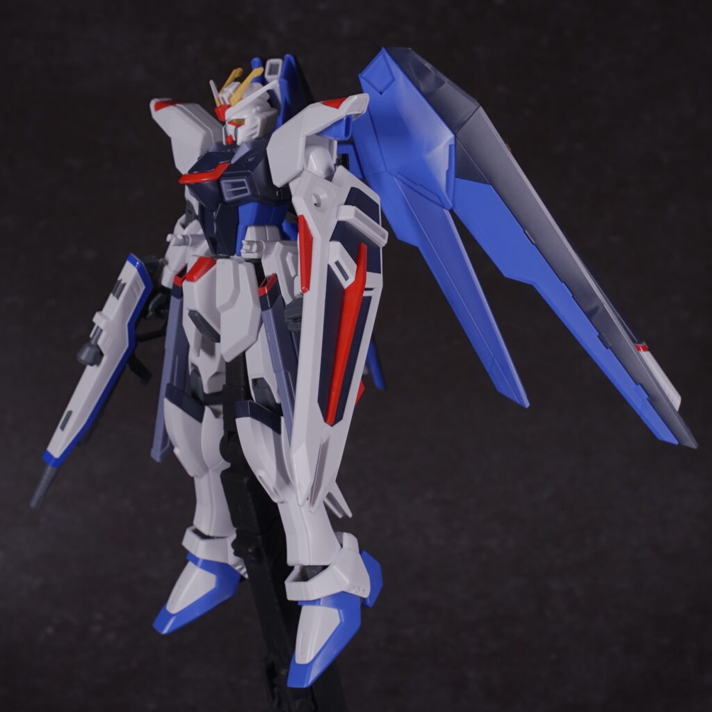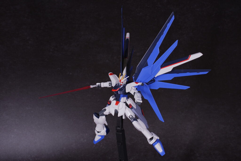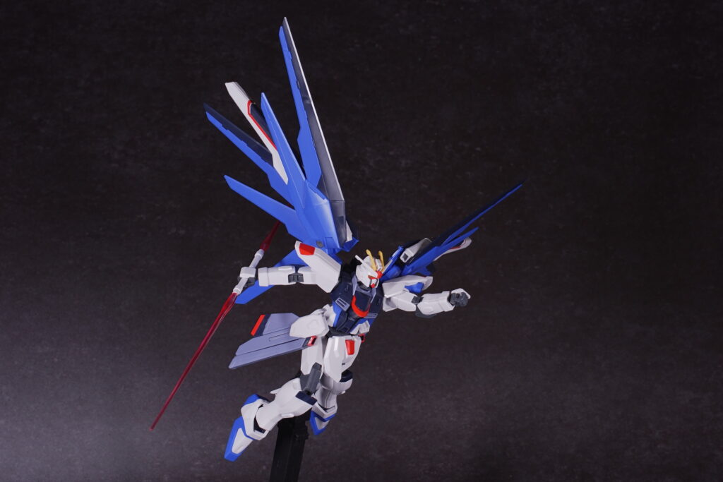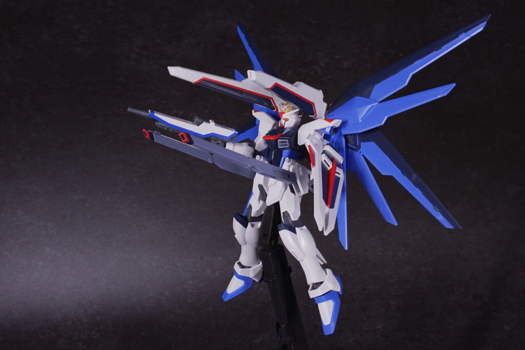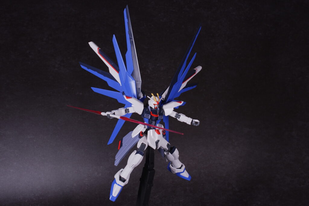 “フリーダムらしさ”を手早く味わえる高い完成度で、ガンプラ初心者から塗装派まで扱いやすい好キットです。翼と各武装の展開ギミックを活かしてポーズを決め、スタンドを併用して安定させれば、SEEDの象徴的なOPシーンなどを1/144サイズで存分に楽しめます。
