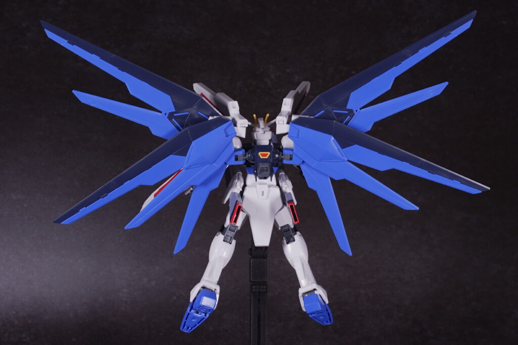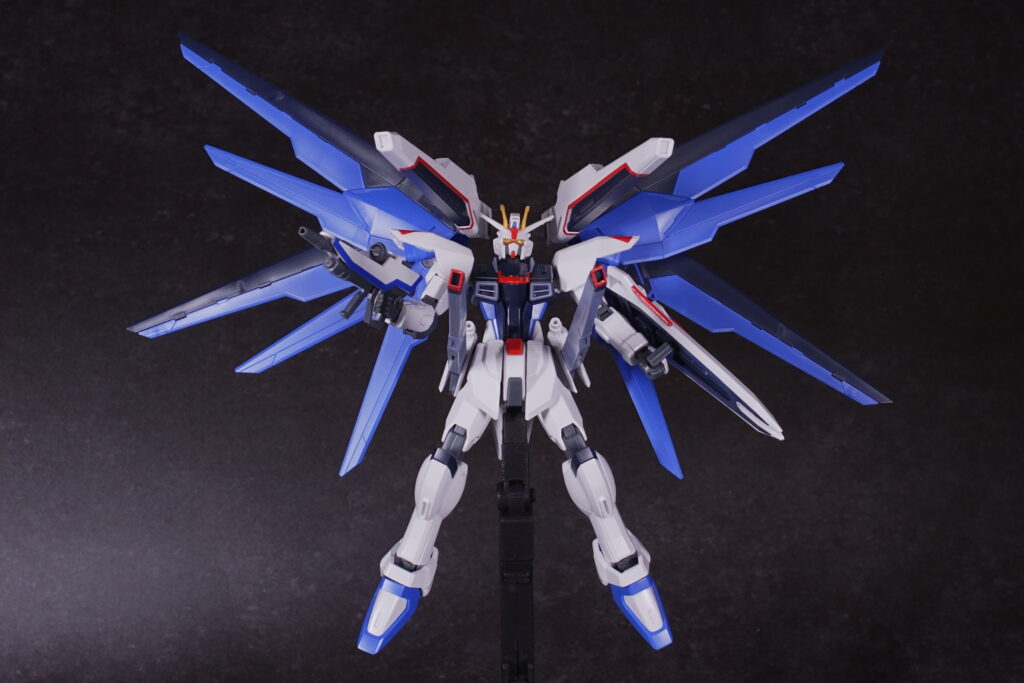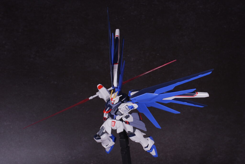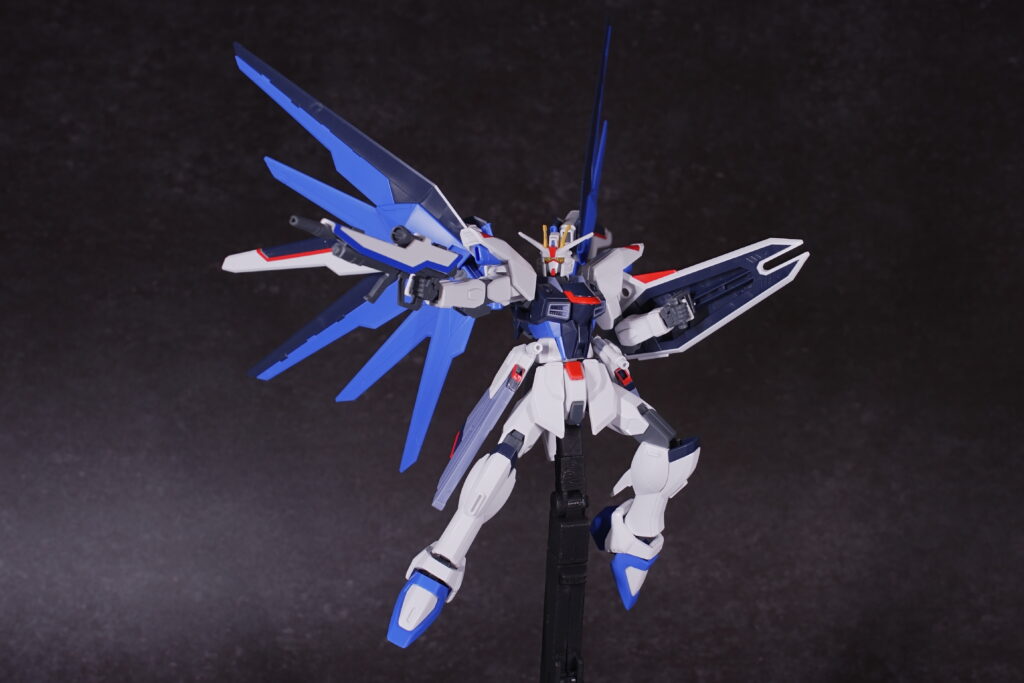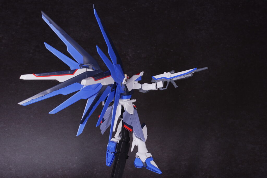 “フリーダムらしさ”を手早く味わえる高い完成度で、ガンプラ初心者から塗装派まで扱いやすい好キットです。翼と各武装の展開ギミックを活かしてポーズを決め、スタンドを併用して安定させれば、SEEDの象徴的なOPシーンなどを1/144サイズで存分に楽しめます。