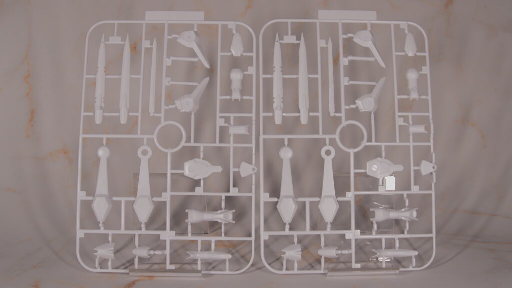 ・ ハドロンブラスター/メーザーバイブレーションソード/スラッシュハーケンと装備が充実し、ワイヤーパーツでハーケン射出も表現できる(スタンド併用で映える)。