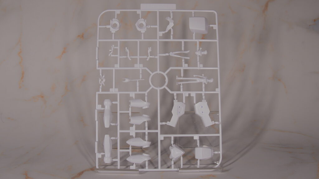 | 色分け | ホワイト・ブルー・レッド・イエロー・グレーの5色成形で大部分を再現。 胸部や肩部の細部はシール補完ですが、素組みでも十分に映える仕上がりです。 |